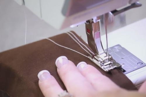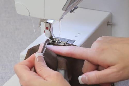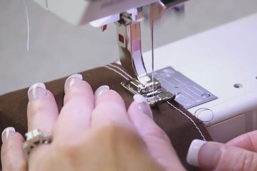 Note: You can use the inside of the foot as a guide to make the stitch as straight as possible. You do not have to lock the seam. -