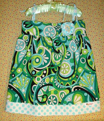This adorable jumper dress with spaghetti straps is perfect for little girls of all ages! The straps are simply tied together, so they can be easily adjusted as your child grows. You can also accessorize the jumper dress with a matching headband, purse and brooch.