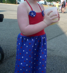 Your girls will look cute and stay cool in this Fourth of July Fireworks Dress. This simple dress is an easy sewing project that has a ribbed knit bodice and a gathered skirt. Decorative touches like buttons and hem stitching make this dress festive.