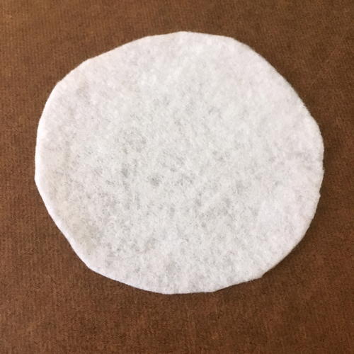 First, you'll need to cut out the base for your flower pin. Using your fabric scissors, create a white felt circle that is about 3.5" wide. You will attach the petals to this piece eventually.