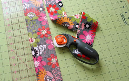 Cut one piece of fabric using your rotary cutter so it measures 3” wide x 40” long.