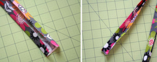 Fold each long side in toward the middle and iron. Fold strip in half and iron again. Basically you’ve just created custom bias tape.