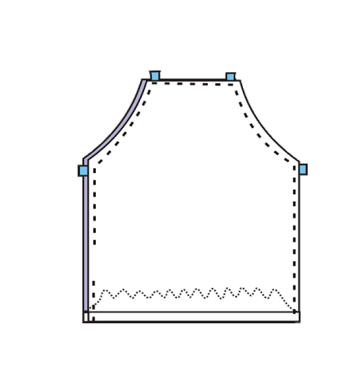 Position the neck band at the top of the apron, between the front and back pieces and pin in place.