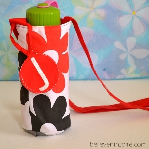 What a great idea for a gift like a runner,student or anyone really. It is hard trying to carry a water bottle when you are carrying a bunch of things in your hand. This tutorial is easy and the pictures help a lot. I love that you can use whatever fabric you like to make it your own style. I drink bottled and am always holding onto more than a handful of things so I am going to try and make it to fit that store bought water bottle.Anyone think it will work?