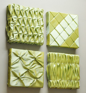 The picture depicts Easy Fabric Wall Art however it is actually a component of a free eBook titled 9 Insanely Awesome Sewing Ideas How to Sew a Pillow, DIY Home Decor, and More. The wall art is lovely and the manipulated fabric that covers the wall art is surprisingly easy to do.