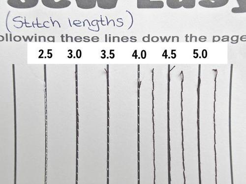 Now it’s time to explore some variations on the regular straight stitch. You can make a stitch reference chart by increasing or decreasing your stitch length and keeping a record. You might find it easier to stitch between the lines so that you can more easily see the length of the stitches. Bonus Challenge: can you stitch between the lines and still sew straight?