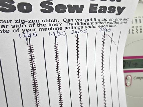 Some of the stitches may also be varied by changing both width and stitch length like you did with the zig-zag stitch. Experiment and have fun; no fabric is being wasted here!