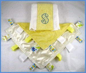 Give your baby a taggie style snuggle blanket and burp cloth to play with and to keep him or her warm. Use free sewing patterns for babies to make them!