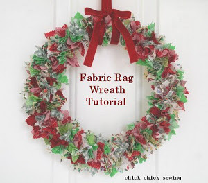 A long time ago, I saw a wreath that looked similar except it used grocery bags cut into strips tied all around. i don't know why it never ocurred to me to use fabric strips. And if you change the colors and chose some different decorations this could be made into wreaths for different holidays or seasons.