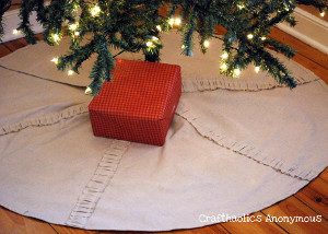 A sometimes forgotten, yet vitally important aspect of your Christmas decorations is the Christmas tree skirt. Add some simple charm to your DIY Christmas decor with this Rustic Ruffled Christmas Tree Skirt. This tutorial shows you how to make a Christmas tree skirt from drop cloth that is easy and budget-friendly. This Christmas tree skirt matches every room and won't distract from your other holiday decor. The ruffles add a sweet, intricate detail that will impress all of your holiday guests. With this DIY Christmas tree skirt, your family will love opening their gifts even more this year.
