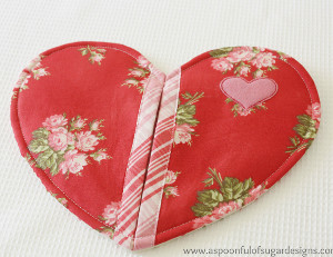 Heart-shaped pot holders are trendy now. They can be made in so many fabrics to go along with the kitchen dcor or with a seasonal theme. The tutorial recommends not only cotton batting to make the pot holder but a well-known thermal batting called Insul-Bright that keeps hot things hot and cold things cold.