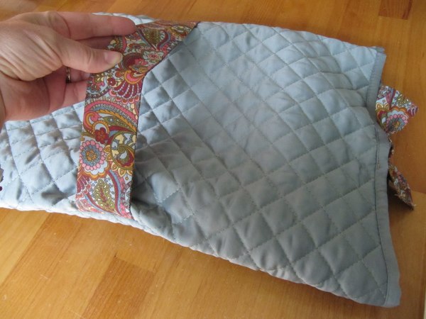 A covered casserole carrier, great for pot luck events, is one of the most useful kitchen items to sew. This one is made with two quilted placemats and a bit of fabric and webbing to steady hand-carrying. Using store-bought placements, or even thrifted ones is a great time saver. This is a great gift idea as well.