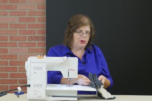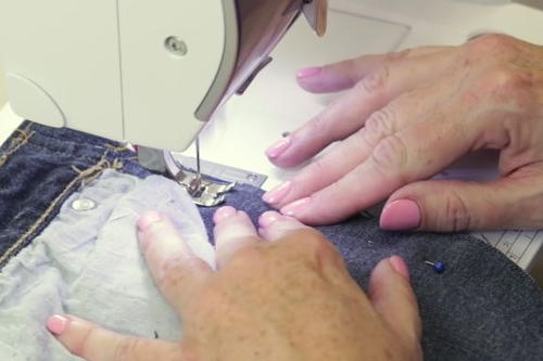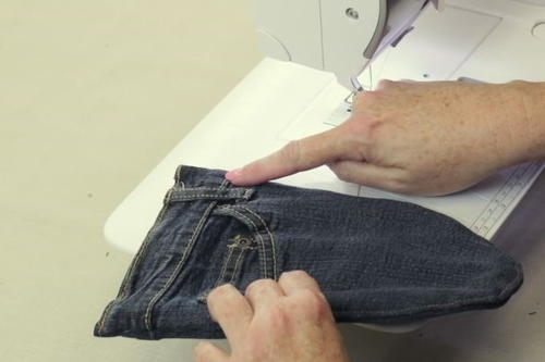 Tip: Use a similar colored thread as was used in the jeans for a decorative, matching appearance. -