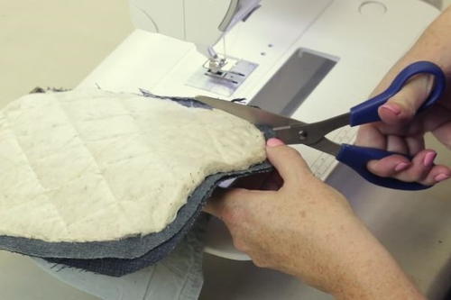 Fold your oven mitt in half (inside out) and round off the edge with scissors.