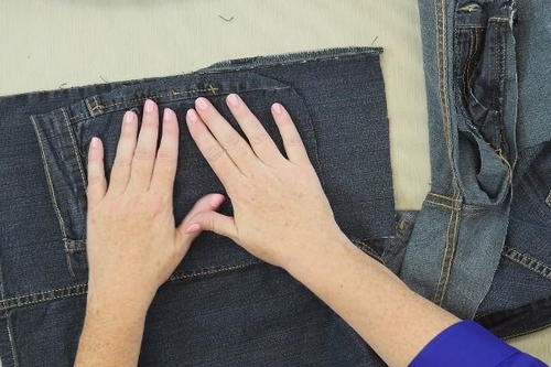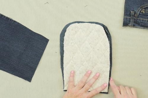 For the other side of the mitt, find a large section of the remaining jeans, and use the "oven mitt" piece you already cut as a template.