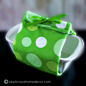This adorable and easy sewing project makes it a breeze to carry a warm loaf of bread to and fro. Created out of a dishtowel, this Super Quick Insulated Loaf Pan is a creative and must-have kitchen sewing craft. Consider creating this as a hostess gift or sewing one up as a gift for a brand new homeowner. You could easily use this technique to create an insulated cover for any size pan, as well.