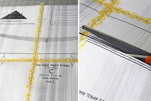 Download the Date Night Dress by April Rhodes. Print the pattern on your home computer and tape the individual pages together with washi tape. Cut out your required size.
