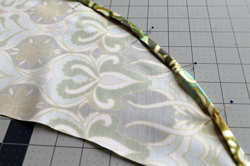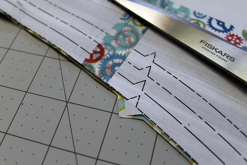 Lay your pre-washed fabric on your cutting surface and pin the three pattern pieces to the fabric. Cut around the pattern pieces, taking care to cut out the notches where marked.