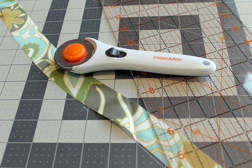 In addition to the pattern pieces, you will also need a length of bias cut fabric for the neckband. Use the marked lines on the cutting mat to help you cut the correct angle.