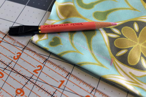 Transfer the pleat markings on the back pattern piece to the fabric, using a dressmaker’s pencil or air erasable marker.