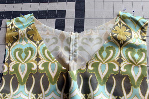 Create the box pleat in the back pattern piece by sewing along the two marked lines with right sides together.