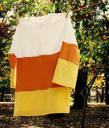 Dress your little guy up as his favorite sweet this Halloween with the Candy Corn Shirt for Boys. All you need are some thrifted shirts to make this easy sewing project. He'll look as sweet as candy in this clever Halloween project.