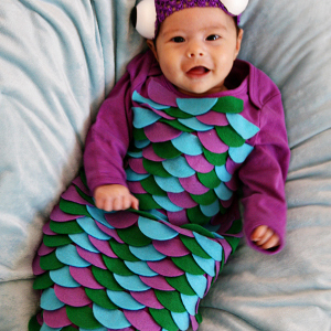 It can be a struggle to find a DIY Halloween costume for your baby that is actually baby friendly. In order to keep a baby happy on Halloween, you need to find a sewn Halloween costume that is comfy. Keep your baby cute and fuss-free by making this Little Fish Homemade Halloween Costume. This too cute costume is easy to make and will delight all your neighbors when you go out trick or treating this fall.