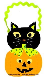 This is a nice little project and I could see this being a great crafting idea for kids, either at school or as a scout troop or church group, or even just at home! You could change it up by using googly eyes for he pumpkin, or pipe cleaners for the cat's whiskers, or even make a rhinestone necklace for the cat. Great idea, so fun and creative!