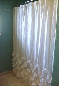 This is a super cute shower curtain with the waves of ruffles and a great way to brighten up any bathroom. I have made shower curtains before with sports logo for my son but never made any with ruffles or grommets either. Are the grommets sturdier than the buttonholes? I seamed my shower curtain and did a french seam so you it looks like part of the curtain. Making a shower curtain is not to hard just need a lot of room to work with all that fabric. This is a super tutorial to make your own and a good one. I like the ruffles it gives it a more elegant look. Thanks for the inspiration.
