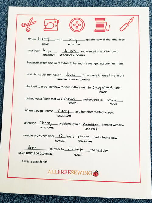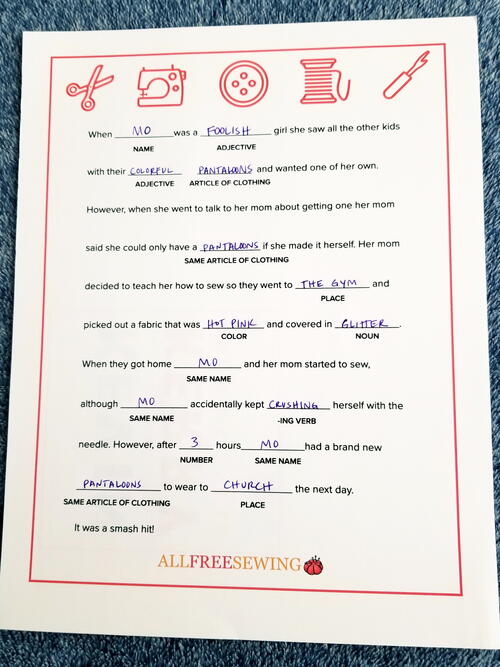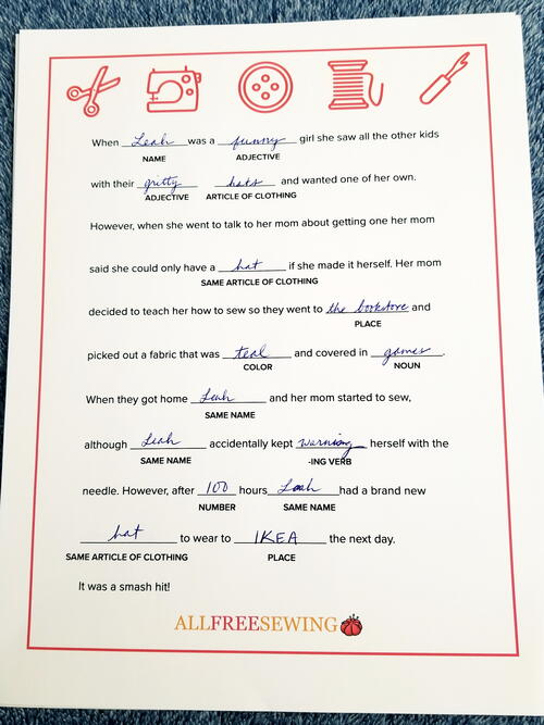 This printable mad libs PDF offers a sewing-themed story that you'll love filling out and reading. Fun for both kids and adults!