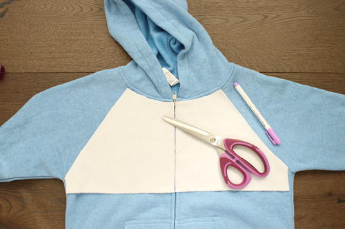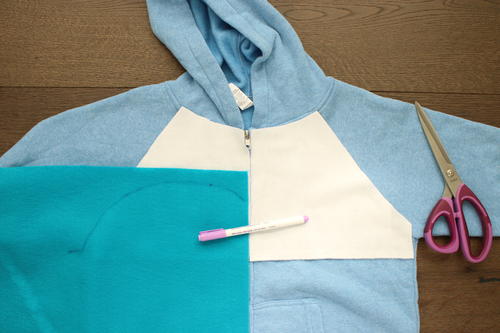 Trace out the white pattern in felt for the front. Adhere to hoodie.