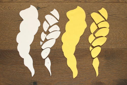 Use the template to create the components of the braid. Cut it out of yellow felt.