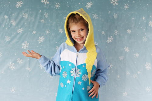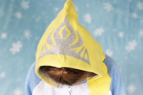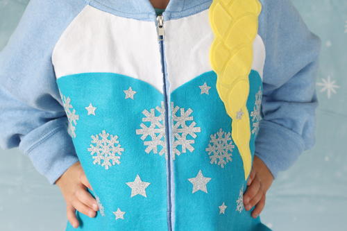 "The cold won't bother anyone wearing this no-sew Elsa hoodie. Bring the ice queen and magic of Disney's Frozen to life with this adorable DIY project that transforms a regular zip-up hoodie into the signature dress worn by Elsa in the first movie.