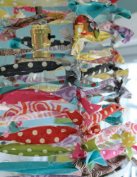What a fun and whimsical idea. I could see this in a child's room or a baby room. The bright colors are fun, but it would be interesting in just black or white or in complementary colors. It is certainly a good way to use up left over fabric scraps.