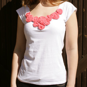 Give your plain and boring T-shirt a makeover in just a few easy steps. This Flirty Flower Embellished Tee is the perfect way to give your wardrobe a makeover for virtually no cost. Check out the tutorial to learn how to make a DIY T-shirt you are sure to love. All you'll need for this easy sewing project is a plain T-shirt and fabric in any color of your choice for the flowers. Follow along with the simple sewing instructions to learn how to make fabric flowers to embellish the neckline of your plain tee.