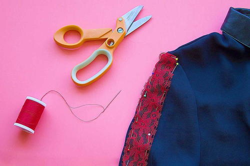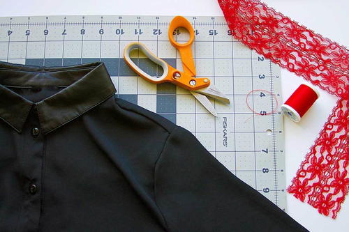 Looking to reinvigorate your old wardrobe with sexy flair without breaking the bank? This step-by-step tutorial will show you How to Refashion a Shirt with Lace so that you can give any drab shirt a youthful makeover in five simple steps. Never wonder again how to upcycle old clothes! This DIY shirt refashion guide will teach you how to add sensual embellishment to any blouse, jacket, or long sleeve dress. All you need is some lace and thread, and your hot new closet is ready for anything from a night on the town to a fancy dinner party!