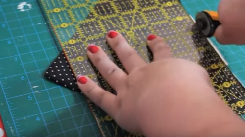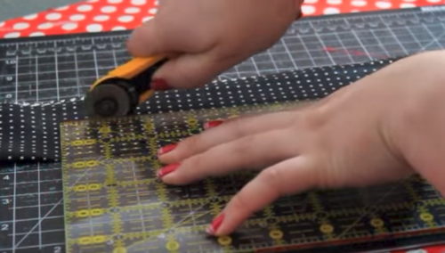 Trim the bottom edge so that it's straight. Fold tie right sides together, and sew along the short side with a 1/4 inch seam. Rotate the fabric so that the seam is now in the middle.