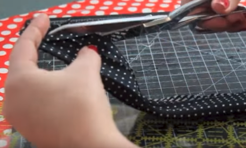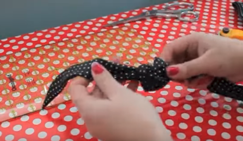 With the tie folded in half, trim the ends at an angle to form a point.