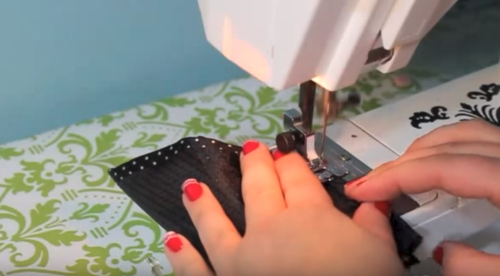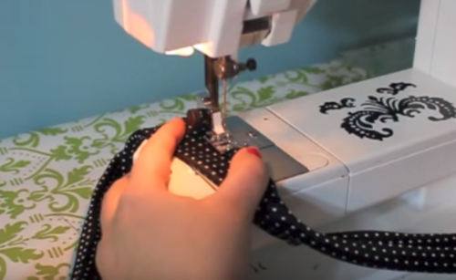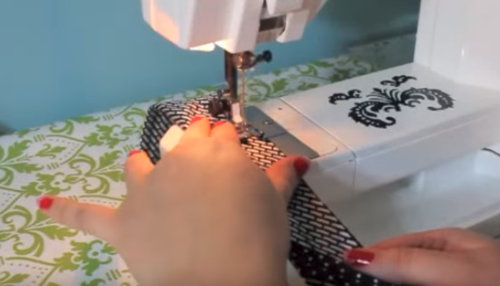 Next sew along the bottom. Use a zig-zag stitch to encase the raw edge. If you're hand-sewing, use a blanket stitch to minimize fraying. Turn right side out.
