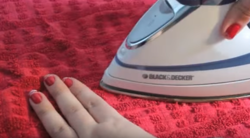 Begin by ironing the tie. Protect it with a cloth and use steam.