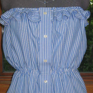 Give a worn man's shirt a few snips and you'll have yourself a stylish new top to wear. This Refashioned Ruffled Strapless Top is an easy project if you're interested in sewing your own clothes. Refashioning clothes is a great way to save money without sacrificing style. There's no need to spend a lot of money to stay up on fashion when you can make this Anthropologie knock-off. You'll love how simple this project is to sew, and you'll love showing off your handiwork too. Because this project reuses clothes, it's also friendly for the environment.