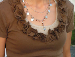 Refashion a shirt to spice up your wardrobe a little bit. This Sew Cute T-Shirt Flower Makeover is the perfect opportunity to transform an old shirt from glum to glam. In addition to redesigning an old piece of clothing, you'll also learn how to make fabric flowers from this sewing tutorial. This easy project yields a beautiful floral neckline that is both flattering and feminine. This is a no brainer as far as sewing projects go because it's easy and fast.