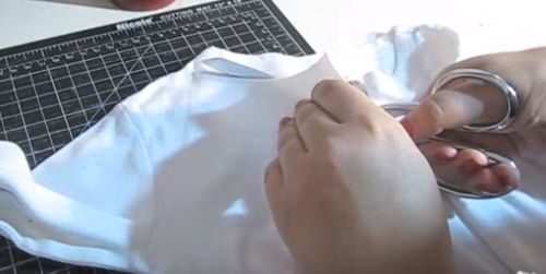 Next, remove the collar by cutting right below the stitches on the neckline.