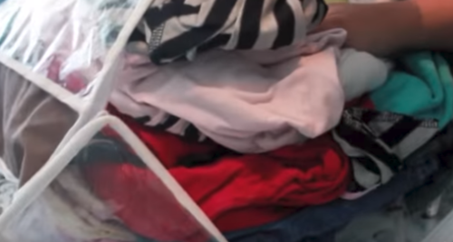 This next refashion would work well for a boy’s shirt as well. My daughter calls it her Gamer Tee because the front pocket can hold her Nintendo. I’ll be using a second shirt from my stash. As I’ve mentioned in other tutorials, I keep a large bag full of old tees to use while refashioning.