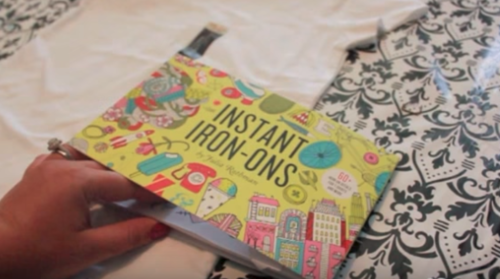 For the first refashion, I’ll be using some iron-ons. These came in a booklet I bought at Paper Source. However, it’s easy to make your own using printable iron-on paper. Alternately, you could draw a design on the tee using fabric markers.