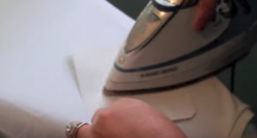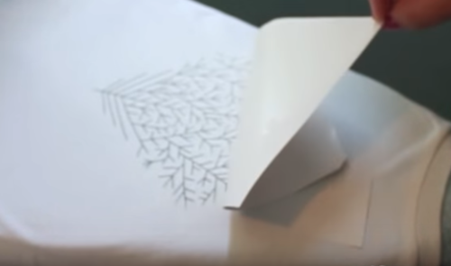 To transfer an iron-on, place the image face down and iron from the center outward in a circular motion. It takes about a minute. Let cool, then remove the paper.