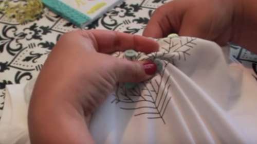 I’m going to embellish my iron-on with buttons. Use a contrasting thread for a pop of color.