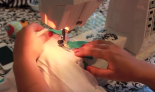 Sew the two layers of fabric together along the curves.