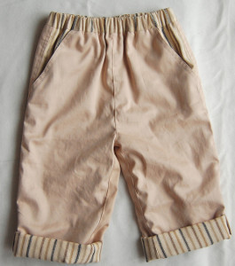 Sewing projects for boys are hard to find, but look no further. Make your little guy these adorable Boys Pants with Striped Cuffs and he'll never want to wear anything else. These trendy, comfy pants have a striped waistband, striped cuffs, and striped pockets that give just a hint of preppy flair to otherwise neutral pants. Fold up the cuffs for a casual summer day at the beach, or roll them down for school or church. This free printable pattern is a size 3, but you can easily alter the pattern for a kid (or adult) of any size.