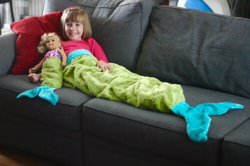Make a splash with this custom DIY mermaid tail for kids. This soft and cozy blanket is sure to be their new favorite blanket.